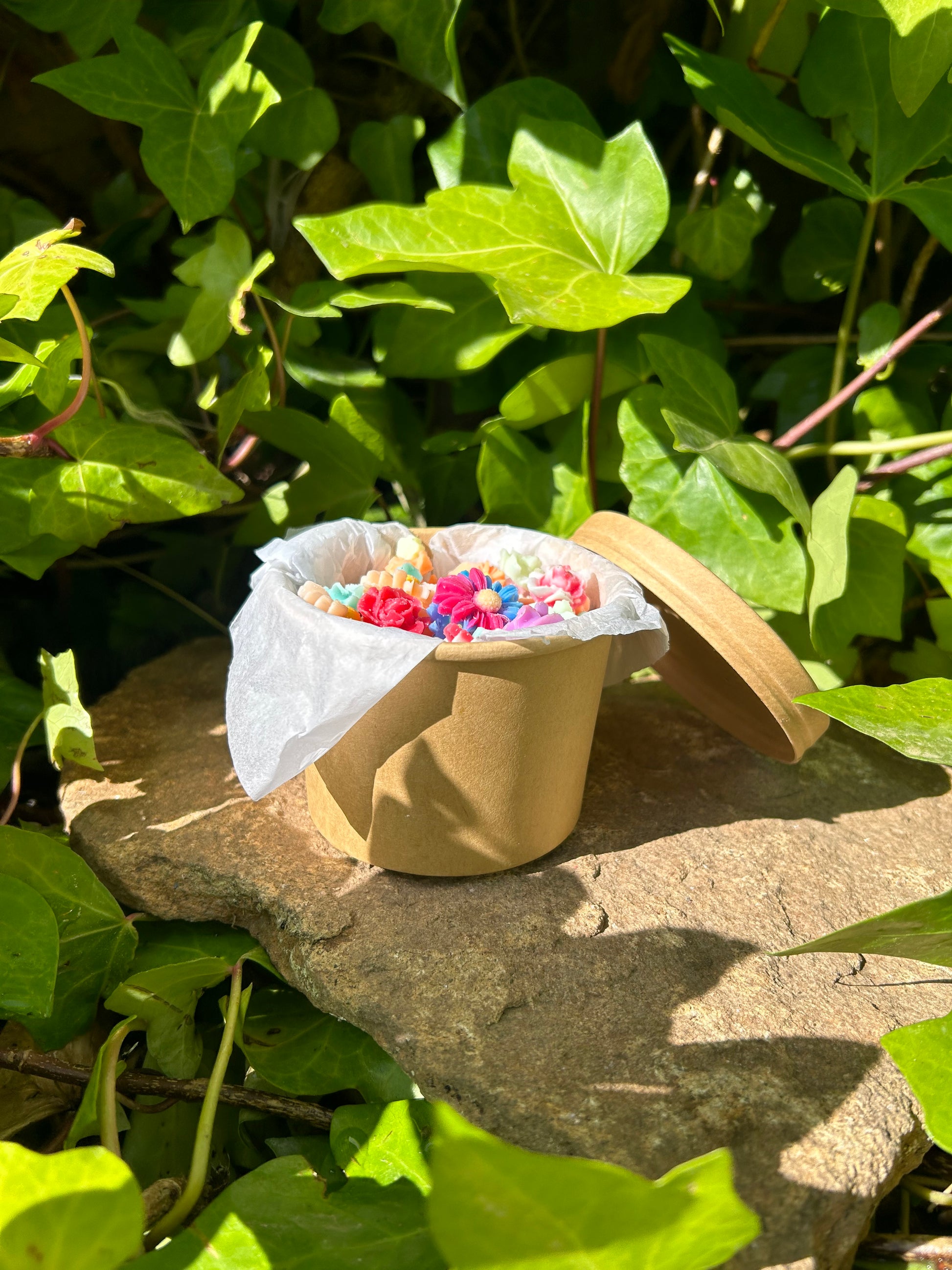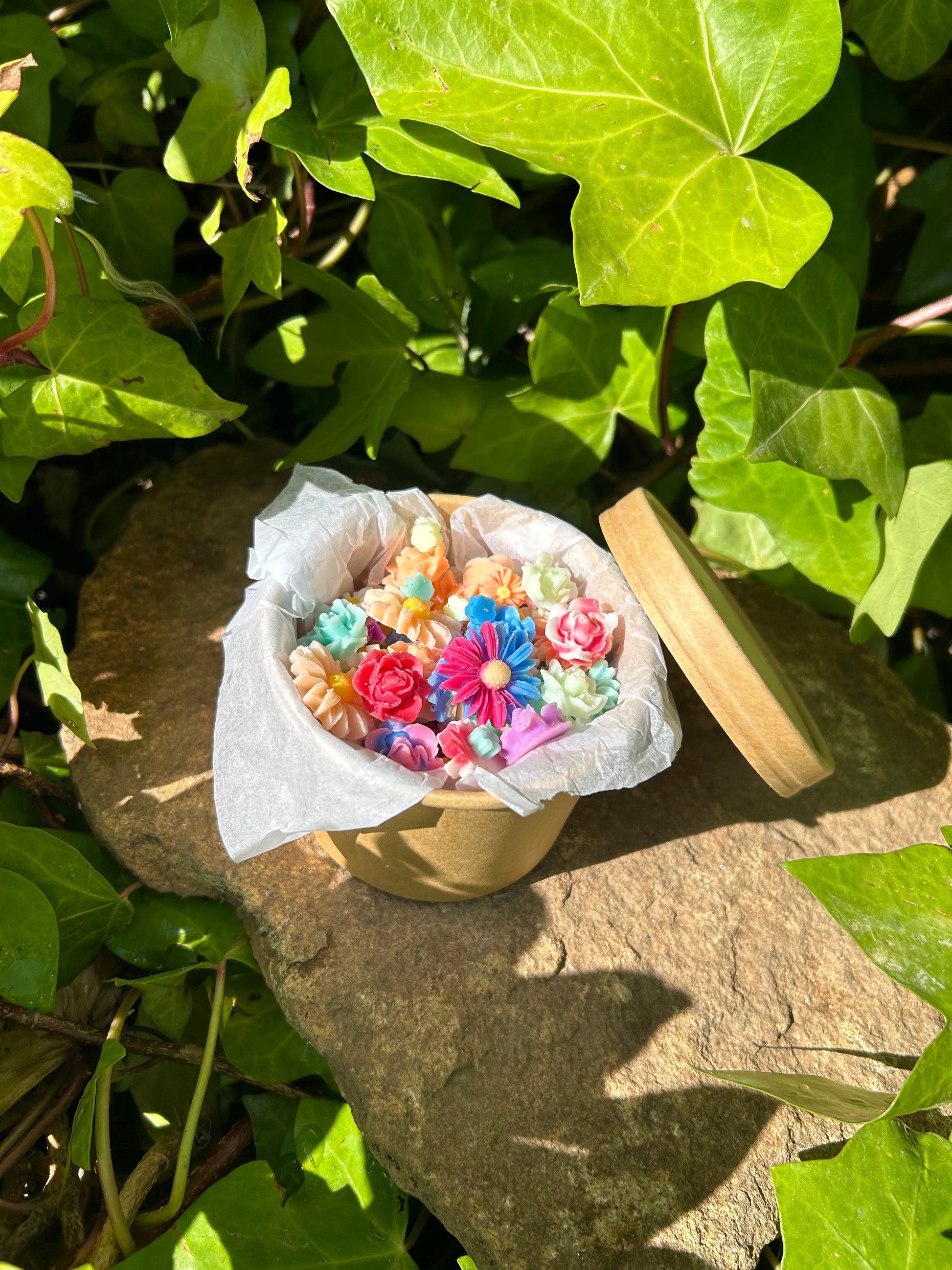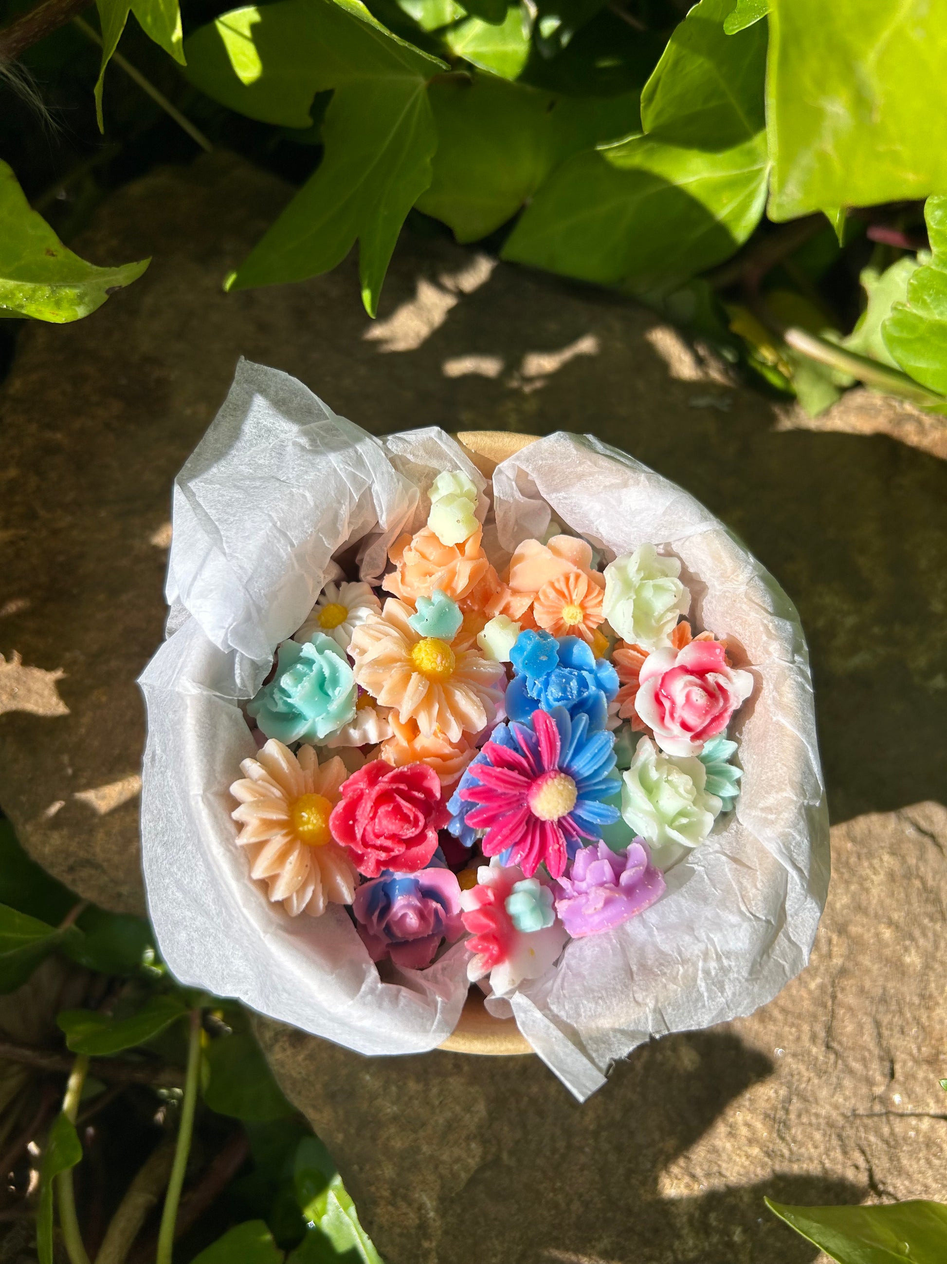 Cada una de estas piezas es un bombón aromático con forma de flor, elaborado de forma artesanal con cera vegetal y 100% naturales.